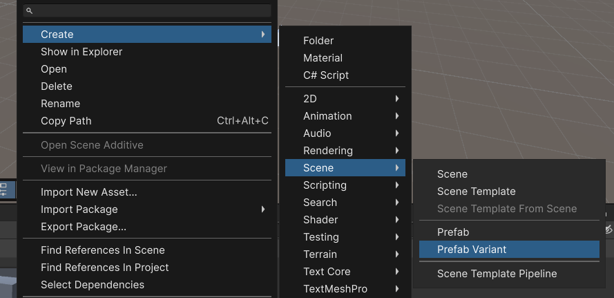 프리팹의 일부 인스턴스를 다르게 만들고 싶은 경우 개별 프리팹 인스턴스의 설정을 오버라이드할 수 있으며, 프리팹의 배리언트를 생성하여 오버라이드 집합을 유의미한 프리팹 배리에이션으로 그룹화할 수도 있습니다.