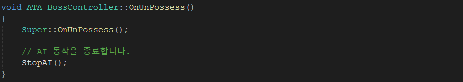 실제로 몬스터에 사용할 AI Controller를 설정(Possess / UnPossess)하는 코드를 작성해보았습니다.