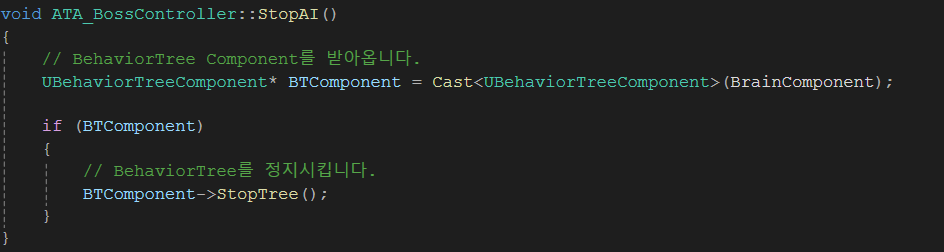 - AI Controller는 BehaviorTree와 상호작용하며, Blackboard를 통해 데이터를 저장 및 사용할 수 있습니다.