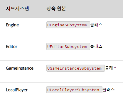 https://docs.unrealengine.com/4.27/ko/ProgrammingAndScripting/Subsystems/