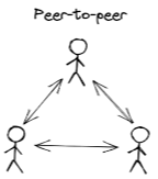 모든 플레이어가 동등한 권한을 가지며, 중앙 서버가 존재하지 않는 모델입니다.